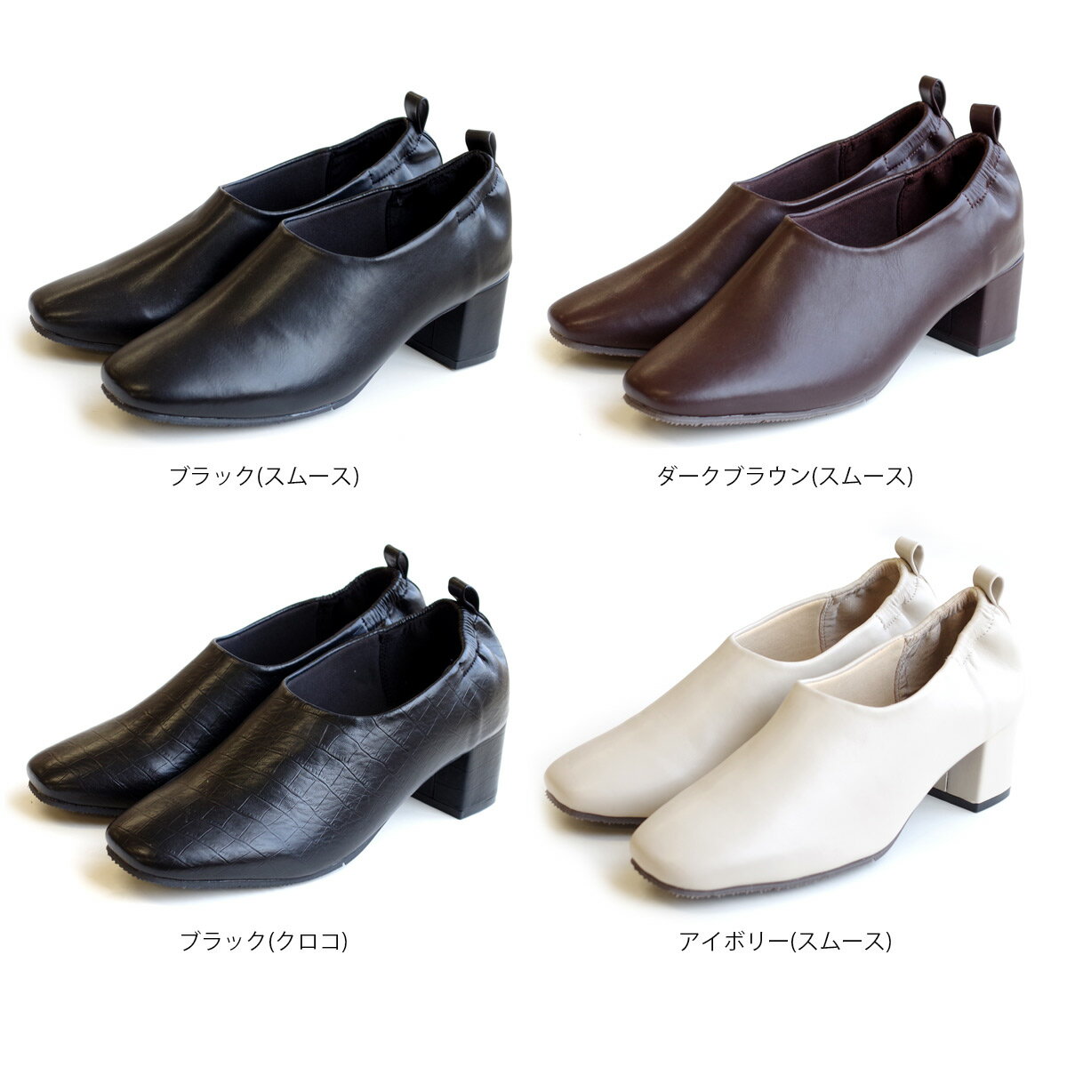 2020年秋冬新作! ブーティ ブーツ スクエアトゥ 歩きやすい ギャザー ブーティ 太ヒール レディース チャンキーヒール アンクル ブラック ブラウン ホワイト 22.5 24.5 クロコ 美脚 スムース 脱げない シャーリング ルリアンプラス