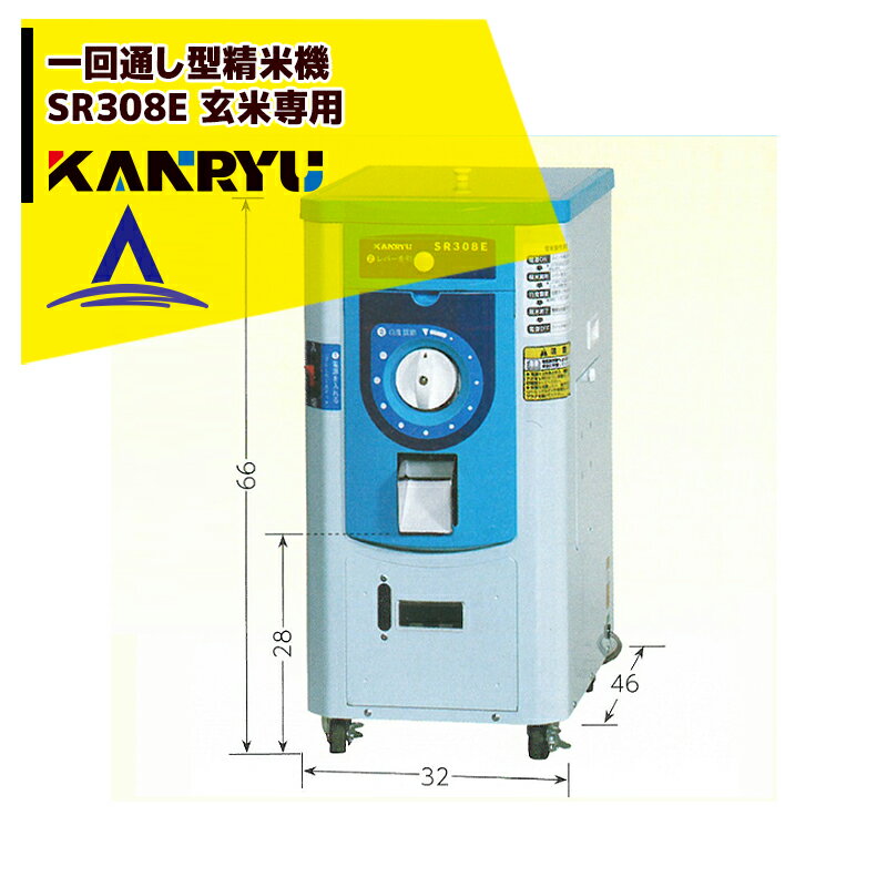 カンリウ工業|一回通し型精米機 SR308E タンク容量:10kg 能率:20〜25kg/1時間で、