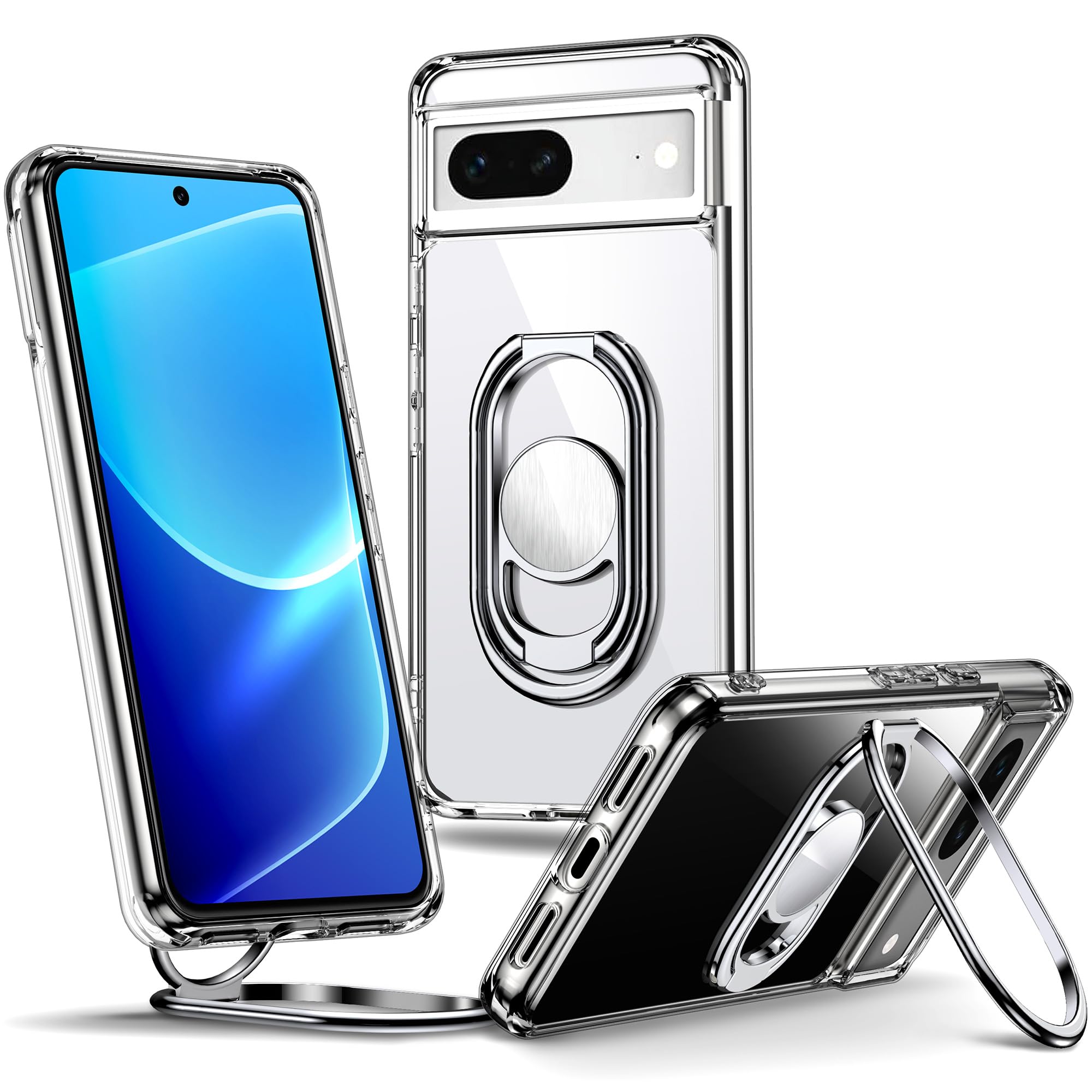 Rockaway Pixel 8A 5G ケース スマホリング スマホグリップ 角度調節可能 折り畳み 耐衝撃 スタンド機能 軽量 落下防止 スマホケース グーグルピクセル8A カバー – クリアで、