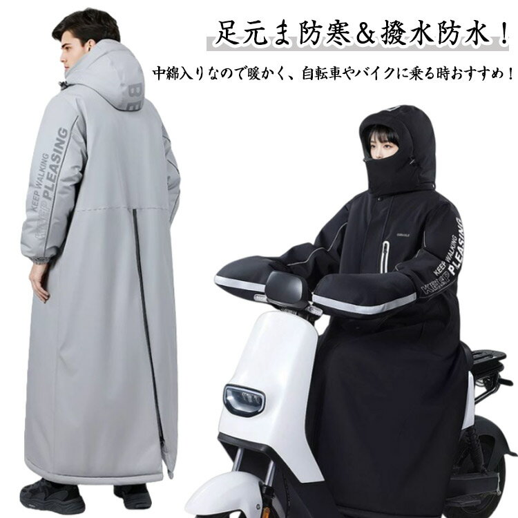 足元ま防寒&撥水防水!中綿入りなので暖かく、自転車やバイクに乗る時おすすめ!ぎっしりと詰まった中綿で空気が体温を逃さず冷たい外気を遮断するので、人が快適とする温度をしっかり保つ事ができます。スポーツ観戦や、ちょっとしたお散歩にも、簡単に羽織れ、便利な1枚です。風の侵入を防ぐ効果が期待できる防風仕様、冬のキャンプやハイキング等のアウトドアウェアからデイリーにスポーティーカジュアルな冬アウターとして最