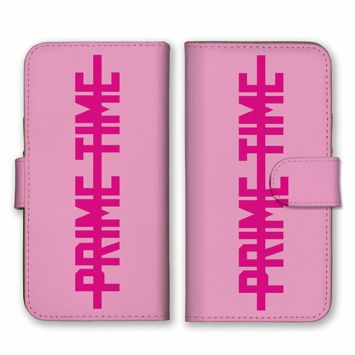 全機種対応 手帳型 スマホケース SIMフリー対応 set21719 PRIME TIME プライムタイム ロゴ 英字 英語 シンプル ピンク ホットピンク 桃色 かっこいい iPhone14 13 12mini Pro Max SE(第3世代) Galaxy Xperia AQUOSで、